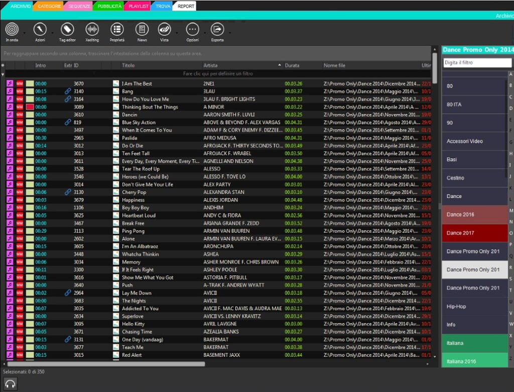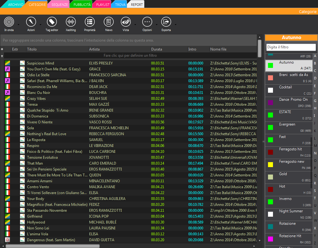 Une bibliothèque organisée et rapide avec des catégories personnalisables (musique, jingles, émissions, promotions, publicités, flux externes). Des grilles avec des colonnes configurables, des options de tri, de regroupement et de visibilité vous permettent d’adapter l’espace de travail à vos besoins.